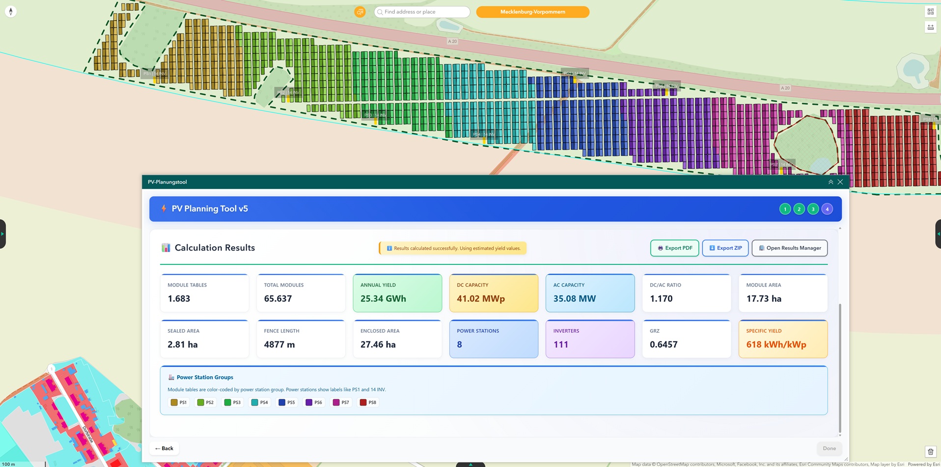 Mitarbeiterinnen und Mitarbeiter können Projektideen flexibel und schnell im GIS anlegen. Durch die intelligente Systemarchitektur werden die Daten aus beiden Systemen im Hintergrund synchronisiert. Nach der Synchronisation lässt sich in GreenOS+ ein Projektansatz anlegen, der im GIS weiterbearbeitet wird. Wie viele Anlagen sind geplant? Welche Watt-Leistung (MW) erzeugt ein geplanter Windpark? Dank automatisierter Berechnungen können Teams Layout-Planungen erstellen, verschiedene Varianten vergleichen und so die optimale Entscheidung treffen.
